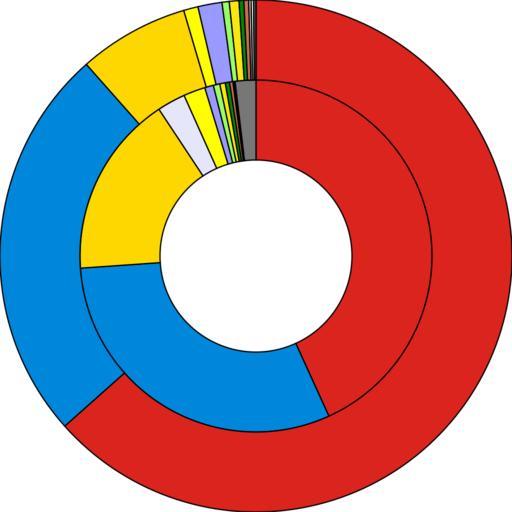 Keywords: Results of the UK General Election, 1997.svg United Kingdom general election 1997 displayed in a ring chart The inside ring shows the proportion of the vote each party got The outside ring shows the number of seats each party got Standard party colors from the English Wikipedia are used Own work by uploader source code H2g2bob 2009-08-18 Election apportionment diagrams of the United Kingdom |