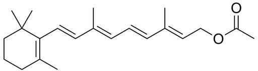 Keywords: Retinyl acetate.svg Chemical structure of retinyl acetate retinol acetate vitamin A acetate acetylretinol Own 19 04 7 December 2011 UTC Ed Edgar181 Vitamin A Acetate esters Retinoids