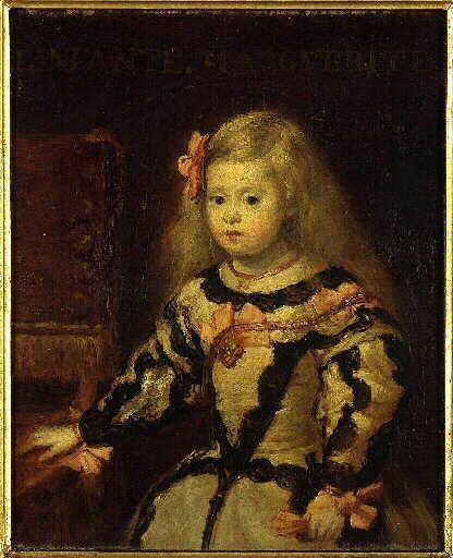 | Keywords: Retrato de la infanta Margarita (4, copy), after Diego Velázquez.jpg after Porträt der Infantin Maria Margarita Tochter Philipps IV Retrato de la infanta Margarita 1651-1673 > 1655 oil canvas cm 14 12 Institution Musée Ingres Montauban accession number object history credit line 06070000280 http //picasaweb google com/EnrikeCdC/VelazquezObraCompleta 5295180235177716242 <gallery> File Diego Velázquez 029 jpg Louvre File Retrato de la infanta Margarita 4 by Diego Velázquez jpg File Diego Velázquez 025 jpg </gallery> PD-old-100 picasareviewunnecessary DEFAULTSORT 1653 after; Margaret Theresa of Spain Paintings in Musée Ingres Infanta Margarita Teresa by Velazquez Louvre 1653 1655 paintings 17th-century portrait paintings in France |