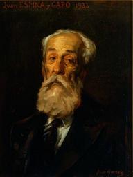 | Keywords: Retrato del pintor Juan Espina y Capo (Real Academia de Bellas Artes de San Fernando, Madrid).jpg Retrato del pintor español Juan Espina y Capo 1848-1933 ~ 1932 oil canvas Size cm 45 60 Institution Real Academia de Bellas Artes de San Fernando http //ceres mcu es/pages/Main object history exhibition history credit line accession number 0599 http //ceres mcu es/pages/Main PD-old-100 Juan Espina y Capo José Garnelo y Alda 20th-century portrait paintings in the Royal Academy of Fine Arts of San Fernando Portrait paintings by José Garnelo in the Royal Academy of Fine Arts of San Fernando |