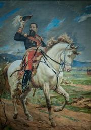 | Keywords: Retrato ecuestre del General Joaquin Crespo. 1897 by Arturo Michelena.jpg Portrait of 1 General Joaquin Crespo equestrian portrait m Palacio de MIraflores oil canvas 346 x 253 cm 1897 own 2014-01-28 12 04 27 Retrato ecuestre del General Joaquin Crespo 1897 by Arturo Michelena NEF creator Arturo Michelena PD-Venezuela PD-US PD-old-100 Retrato ecuestre del General Joaquin Crespo by Arturo Michelena | ||||