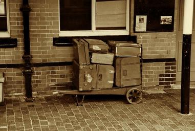 Keywords: retro retro luggage travel suitcase luggage old vintage baggage railway station classic aged journey trip sepia picture sepia brown excursion adventure luggage trolley