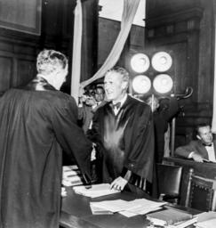 | Keywords: rettsak litteratur forfattere oslo norge blackandwhite monochrome indoor black and white Behandling av ankesak i Høyesterett 9. mai 1958 i forbindelse med utgivelsen av Sangen om den røde rubin. Fotograf: Fjørtoft, Bjørn, Billedbladet NÅ, Riksarkivet (RA/PA-0797/U/Ue/L0064/0012) Behandling av ankesak i Høyesterett 9. mai 1958 i forbindelse med utgivelsen av Sangen om den røde rubin. Fotograf: Fjørtoft, Bjørn, Billedbladet NÅ, Riksarkivet (RA/PA-0797/U/Ue/L0064/0012) | ||||