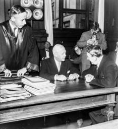 | Keywords: rettsak litteratur forfattere oslo norge blackandwhite monochrome black and white Behandling av ankesak i Høyesterett 9. mai 1958 i forbindelse med utgivelsen av Sangen om den røde rubin. Fra venstre: Forsvarer høyesterettsadvokat Knut Blom, Harald Grieg, forlagsredaktør i Gyldendal, og Francis Bull, styreformann i Gyldendal. Fotograf: Fjørtoft, Bjørn, Billedbladet NÅ, Riksarkivet (RA/PA-0797/U/Ue/L0064/0012) Behandling av ankesak i Høyesterett 9. mai 1958 i forbindelse med utgivelsen av Sangen om den røde rubin. Fra venstre: Forsvarer høyesterettsadvokat Knut Blom, Harald Grieg, forlagsredaktør i Gyldendal, og Francis Bull, styreformann i Gyldendal. Fotograf: Fjørtoft, Bjørn, Billedbladet NÅ, Riksarkivet (RA/PA-0797/U/Ue/L0064/0012) |