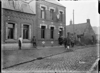 | Keywords: blackandwhite monochrome architecture building outdoor road black and white A street scene in Beauvois, France showing French civilians who have returned to the town outside their undamaged houses. A French tricolour flag flies from a second storey of one dwelling. Photograph taken 14 October 1918 by Henry Armytage Sanders. Inscriptions: Inscribed - Photographer's title on negative -bottom right: H1081. Quantity: 1 b&w original negative(s). Physical Description: Dry plate glass negative 4 x 5 inches Returned French civilians outside their homes in Beauvois, France, World War I. Royal New Zealand Returned and Services' Association :New Zealand official negatives, World War 1914-1918. Ref: 1/2-013644-G. Alexander Turnbull Library, Wellington, New Zealand. natlib.govt.nz/records/22420629 A street scene in Beauvois, France showing French civilians who have returned to the town outside their undamaged houses. A French tricolour flag flies from a second storey of one dwelling. Photograph taken 14 October 1918 by Henry Armytage Sanders. Inscriptions: Inscribed - Photographer's title on negative -bottom right: H1081. Quantity: 1 b&w original negative(s). Physical Description: Dry plate glass negative 4 x 5 inches Returned French civilians outside their homes in Beauvois, France, World War I. Royal New Zealand Returned and Services' Association :New Zealand official negatives, World War 1914-1918. Ref: 1/2-013644-G. Alexander Turnbull Library, Wellington, New Zealand. natlib.govt.nz/records/22420629 |