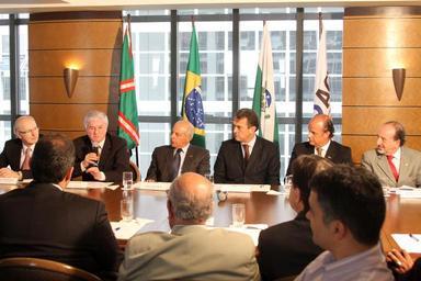 | Keywords: O presidente da AL, deputado Valdir Rossoni, e o 1º secretário, deputado Plauto Miró, particiram nesta quarta-feira (23) de uma reunião/almoço com conselheiros e diretores da Associação Comercial do Paraná (ACP). Foto: Nani Gois / Assembleia Legislativa do Paraná |