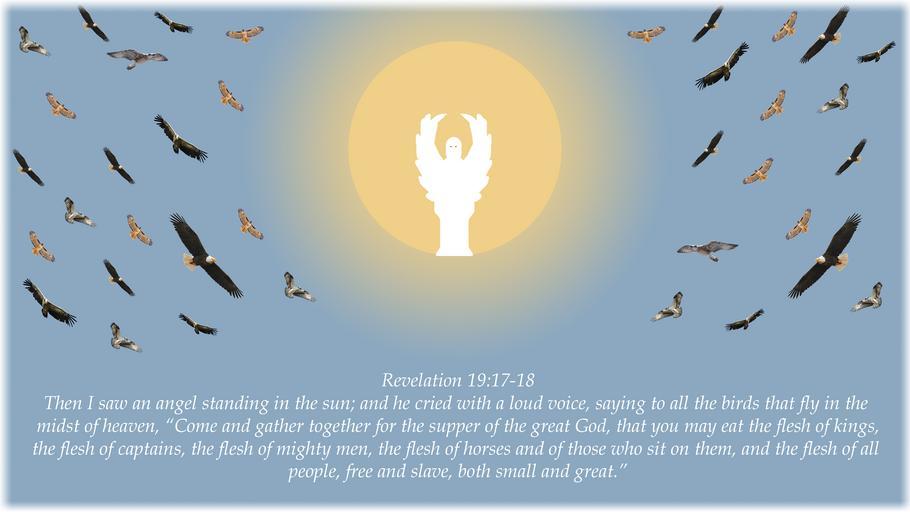 | Keywords: god jesus jesus christ jesuschrist god the father godthefather holy spirit holyspirit holy church scripture angels faith prayer pray hope peace love alive forevermore aliveforevermore angel christian righteous king of kings kingofkings heaven archangel god is love godislove prince of peace princeofpeace creator christ the creator christthecreator god the creator godthecreator third heaven thirdheaven awesome alpha and omega alphaandomega wonderful glorious omnipotent almighty bible holy bible holybible armor of god armorofgod glorify hallelujah judgment judgment day judgmentday usa united states of america unitedstatesofamerica sleep christ who strengthens me christwhostrengthensme supper of the great god supperofthegreatgod birds word of god wordofgod the lord is my shepherd thelordismyshepherd eternity confess repent repentance humble sinner humble yourself humbleyourself saved lost found salvation praise god praisegod amen word became flesh wordbecameflesh be strong bestrong courage spiritual warfare text writing New King James Version (NKJV) Then I saw an angel standing in the sun; and he cried with a loud voice, saying to all the birds that fly in the midst of heaven, “Come and gather together for the supper of the great God, that you may eat the flesh of kings, the flesh of captains, the flesh of mighty men, the flesh of horses and of those who sit on them, and the flesh of all people, free and slave, both small and great.” Romans 8:28 New King James Version (NKJV) And we know that all things work together for good to those who love God, to those who are the called according to His purpose. New King James Version (NKJV) Then I saw an angel standing in the sun; and he cried with a loud voice, saying to all the birds that fly in the midst of heaven, “Come and gather together for the supper of the great God, that you may eat the flesh of kings, the flesh of captains, the flesh of mighty men, the flesh of horses and of those who sit on them, and the flesh of all people, free and slave, both small and great.” Romans 8:28 New King James Version (NKJV) And we know that all things work together for good to those who love God, to those who are the called according to His purpose. |