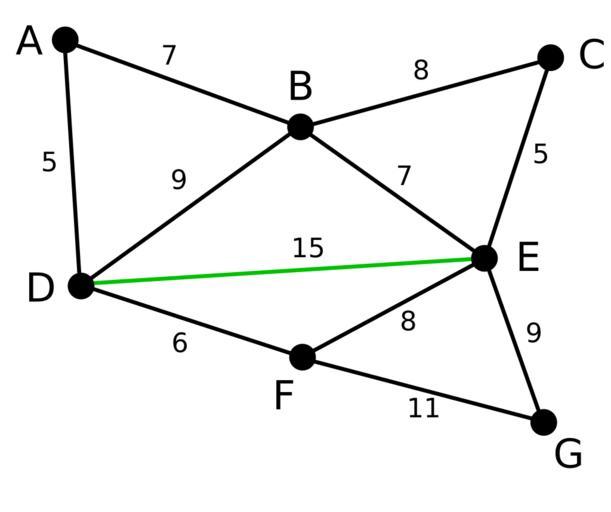 Keywords: Reverse Delete 1.svg The algorithm will start with the maximum weighted edge which in this case is DE with an edge weight of 15 Since deleting edge DE does not further disconnect the graph it is deleted Transferred from http //en wikipedia org en wikipedia; transferred to Commons by User Sefid par using http //tools wikimedia de/~magnus/commonshelper php CommonsHelper <br/> Original text self-made 2008-02-07 Terencehonles talk Original uploader was Terencehonles at http //en wikipedia org en wikipedia Released into the public domain by the author en wikipedia Terencehonles Original upload log page en wikipedia Reverse_Delete_1 svg 2008-02-07 09 55 Terencehonles 618×518× 18560 bytes <nowiki> self-made ~~~ </nowiki> Reverse Delete n |
