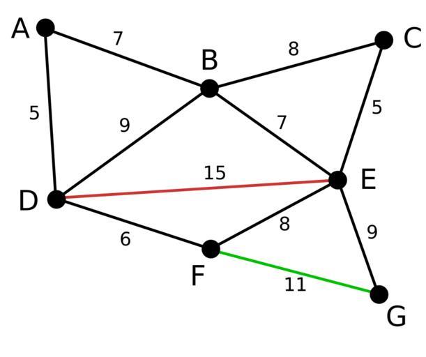 Keywords: Reverse Delete 2.svg en wikipedia 2012 February 10 The next largest edge is FG so the algorithm will check if deleting this edge will further disconnect the graph Since deleting the edge will not further disconnect the graph the edge is then deleted Transferred from http //en wikipedia org en wikipedia; transferred to Commons by User Sefid par using http //tools wikimedia de/~magnus/commonshelper php CommonsHelper <br/> Original text self-made 2008-02-07 Terencehonles talk Original uploader was Terencehonles at http //en wikipedia org en wikipedia Released into the public domain by the author en wikipedia Terencehonles Original upload log page en wikipedia Reverse_Delete_2 svg 2008-02-07 09 55 Terencehonles 618×518× 18558 bytes <nowiki> self-made ~~~ </nowiki> Reverse Delete n |