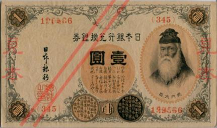 | Keywords: Revised 1 Yen Bank of Japan Silver convertible - front.jpg en Revised 1 Yen Bank of Japan silver convertible note Portrait Takenouchi no Sukune First Issed in 1889 Now defined as nonredeemable legal tender by law 145mm x 85mm 2011-07-02 own Eclipse2009 PD-Japan-exempt banknotes PD-Japan 1 Yen banknotes of Japan Takeshiuchi no Sukune |