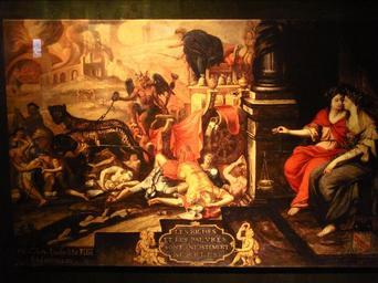 | Keywords: Révolte du papier timbré.JPG duc de Chaulnes gouverneur de Bretagne A droite les allégories de la Justice et la Paix détournent le regard A gauche la ville de Rennes est envahie par les flammes de l'Enfer The tax is represented as a chariot driven by a devil which is the duke of Chaulnes governor of Britain On the right the allegories of Justice and Peace look away On the left the city of Rennes is engulfed in flames of Hell 1676 oil on canvas Size m 1 50 1 05 Institution Musée de Bretagne Bretagne est Univers Joconde 00000075276 object history protonotaire apostolique et archidiacre de Rennes credit line accession number INV 860 1 1 Sammyday 2012-03-04 PD-old-100 other versions Uploaded with UploadWizard 17th-century works in the Musée de Bretagne Jean-Bernard Chalette 1676 paintings in France Revolt of the papier timbré ImageNote 1 1695 2495 1225 673 4416 3312 2 200px ImageNoteEnd 1 ImageNote 2 3996 2628 414 397 4416 3312 2 fr Armes de la famille de La Monneraye en Coat of arms of La Monneraye's family ImageNoteEnd 2 ImageNote 3 121 2843 1049 342 4416 3312 2 RECTA JUDICATE FILII HOMINUM ImageNoteEnd 3 |