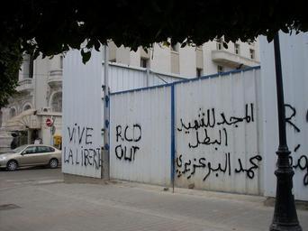 | Keywords: Révolution des Jasmins 04.jpg fr Graffitis suite à la révolution des jasmins own Rais67 2011-01-22 Cc-zero Signs of the Tunisian Revolution Political graffiti in Tunisia Arabic inscriptions in Tunisia French inscriptions in Tunisia Avenue Habib Bourguiba of Tunis |