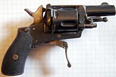 | Keywords: Revolver St ETienne Small.jpg My Picture Lax Fabrication St Etienne France Revolver Queue de détente pliante N° 19 Debut 20eme siècle 2006-05-07 own assumed Lax1 Source Lax License Public Domain Revolvers of France Manufacture d'Armes de St-Etienne |