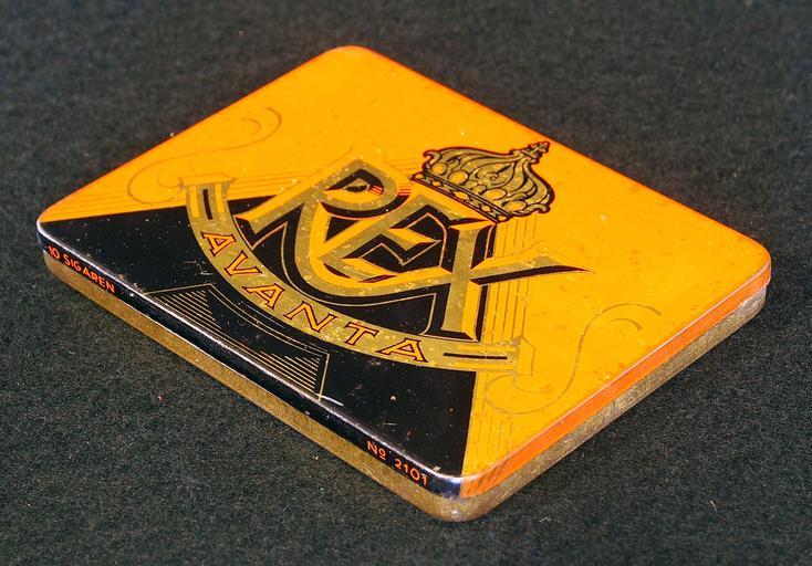 Keywords: Rex Avanta sigaren blik, foto2.JPG Very old packaging of a Dutch product that is not produced and/or not sold any more own 2014-03-14 11 26 50 Alf van Beem CC-Zero Trademarked Rex cigars Cigar tins