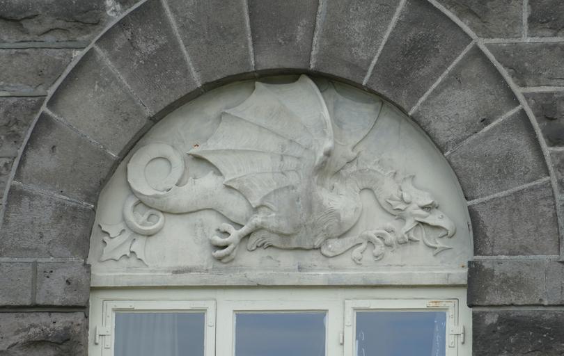 Keywords: reykjavik parliament policy historically facade government city capital iceland building frieze relief image dragon griffin places of interest fig
