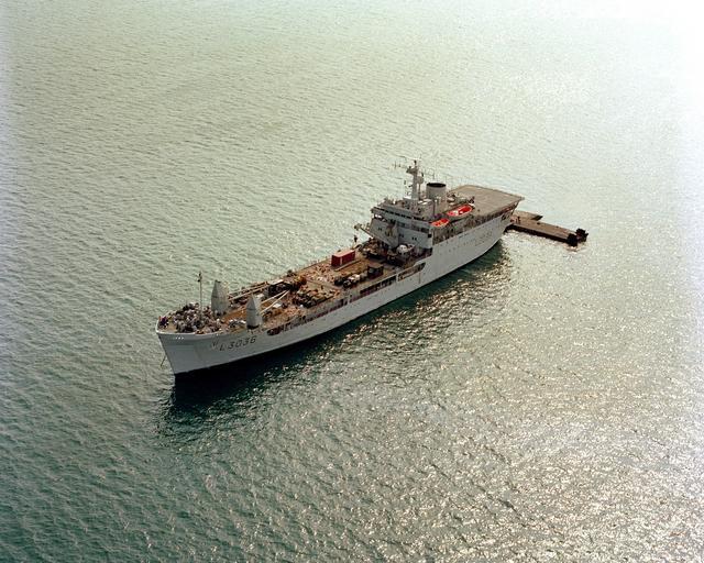 Keywords: RFA Sir Percivale L3036.jpg An aerial port bow view of the British logistic landing ship RFA SIR PERCIVALE L 3036 at anchor during the NATO Southern Region exercise DRAGON HAMMER '90 Shot 3 May 1990 PD-USN L3036 Sir Percivale ship 1968 Percivale Dragon-Hammer90 |