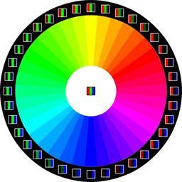 | Keywords: RGB color wheel 10.svg en RGB color wheel 10° and RGB pixels 2013-06-25 03 23 16 own László Németh <gallery> Image RGB color wheel pixel 5 svg 72 colors with RGB pixels Image RGB color wheel pixel 15 svg 24 colors with RGB pixels Image RGB color wheel pixel 30 svg 12 colors with RGB pixels Image RGB color wheel 360 svg 360 colors Image RGB color wheel 72 svg 72 colors Image RGB color wheel 36 svg 36 colors Image RGB color wheel 24 svg 24 colors Image RGB color wheel 12 svg 12 colors </gallery> Valid SVG Created with LibreOffice ; Created in LibreOffice 4 with this LibreLogo program ; Usage Put this code into an English language document in LibO Writer ; and click on the Start icon of the View»Toolbars»Logo toolbar TO subpixel r g b size FILLCOLOR r g b RECTANGLE size 3 size END TO pixel r g b where width z HEADING v PENSIZE IF where -1 ; central RGB pixel for white distance 0 PENCOLOR BLACK distance 150 + 1 5 width PENCOLOR WHITE PENUP HEADING where-width FORWARD distance HEADING 3h PENSIZE width/5 PENDOWN SQUARE 1 5 width PENUP BACK width/2 subpixel r 0 0 width/2 FORWARD width/2 subpixel 0 g 0 width/2 FORWARD width/2 subpixel 0 0 b width/2 BACK width/2 HEADING where-width BACK distance HEADING z PENSIZE v END TO pie r g b where width FILLCOLOR r g b CIRCLE 300 300 where where + width pixel r g b where width FILLCOLOR r 0xff g 0xff b 0xff CIRCLE 300 300 180 + where 180 + where + width r r 0xff g g 0xff b b 0xff pixel r g b 180+where width END PENDOWN HOME CLEARSCREEN HIDETURTLE i INPUT Level or Enter level 2 IF i i 2 i INT i PENCOLOR INVISIBLE size 360/ 12 i LEFT size 1 5 ; PICTURE RGB_color_wheel_ d svg size ; from LibreOffice 4 1 1 PICTURE FILLCOLOR BLACK CIRCLE 300 + size 6 FILLCOLOR WHITE CIRCLE 300 REPEAT 2 i+1 u REPCOUNT-1 255/ 2 i pie 255 255 - INT u 0 REPCOUNT size size REPEAT 2 i u REPCOUNT 255/ 2 i pie 255 0 INT u 60 + REPCOUNT + 1 size size REPEAT 2 i-1 u REPCOUNT 255/ 2 i pie 255 - INT u 0 255 120 + REPCOUNT + 1 size size FILLCOLOR WHITE CIRCLE 100 pixel 255 255 255 -1 size cc-zero Uploaded with UploadWizard Colorwheels Images with LibreLogo source code |
