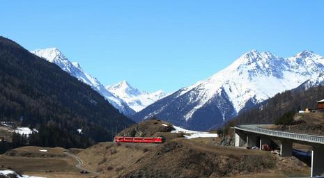 | Keywords: rhaetian train locomotive traffic gleise seemed transport railway station route railway red landscape nature mountain snow alpine switzerland scenic sky village winter forest destinations bridge sun blue seasons spring alpine panorama mountains travel sunny background engadin |