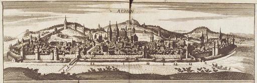 Keywords: Rhein-Strom 0184a Achen.jpg Aachen engraving from Martialischer Schau-Platz/ Des Lustreichen und zuglich blutigen Rhein-Strohms Worinnen Alle Kriege/ Bataillen/ Scharmützel und Schlachten/ Verwüstungen/ derer Stadte/ Vestungen welche an beyden Ufern des Ober-und Nieder-Rheins/ bis / und einer Land-Charte ausgezieret Hofmann Nürnberg 1690 Herzog August Bibliothek Wolfenbüttel http //diglib hab de/drucke/gm-3899/start htm 1690 after Matthäus Merian PD-old-100 Martialischer Schau-Platz Des Lustreichen und zuglich blutigen Rhein-Strohms Historical views of Aachen
