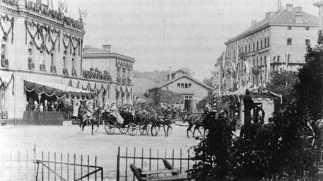 | Keywords: Rheinbahnhof Kaiser Wilhelm II Koblenz 1893.jpg en Arrival of emperor Wilhelm II at Rhine-Station in Koblenz de Ankunft von Kaiser Willhelm II auf dem Rheinbahnhof links in der Fischelstraße in Koblenz rechts das 2015 abgerissene Gebäude der žGräfin von Königsmarkschen Weinkellerei Stadtarchiv Koblenz author 1893-09-01 PD-old Train stations in Koblenz Historic views of Koblenz Wilhelm II of Germany in 1893 1893 in Koblenz Animals of Rhineland-Palatinate | ||||