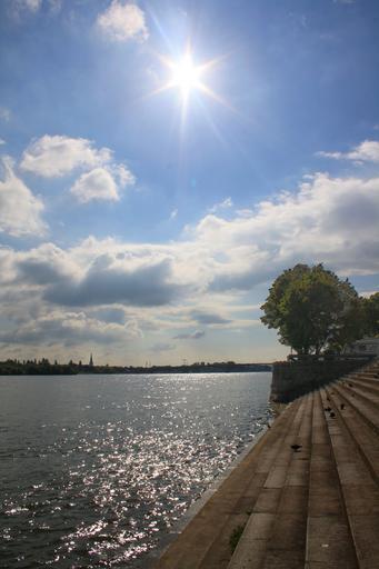 Keywords: rhine rhine river mainz germany nature sunlight waters landscape sunbeam