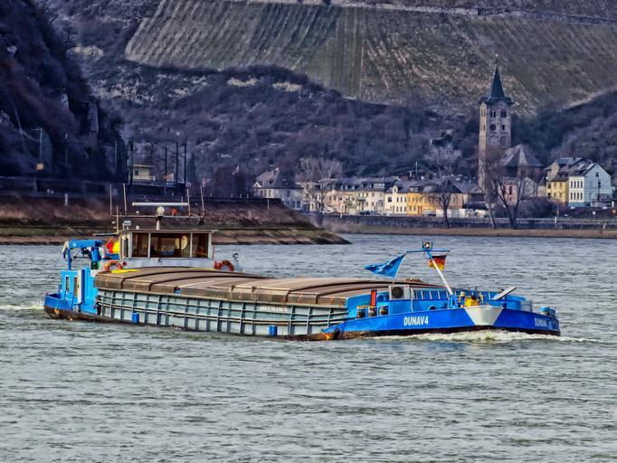 Keywords: rhine river germany ship barge boat mountains village scenic business industry shore shoreline hdr nature outside countryside
