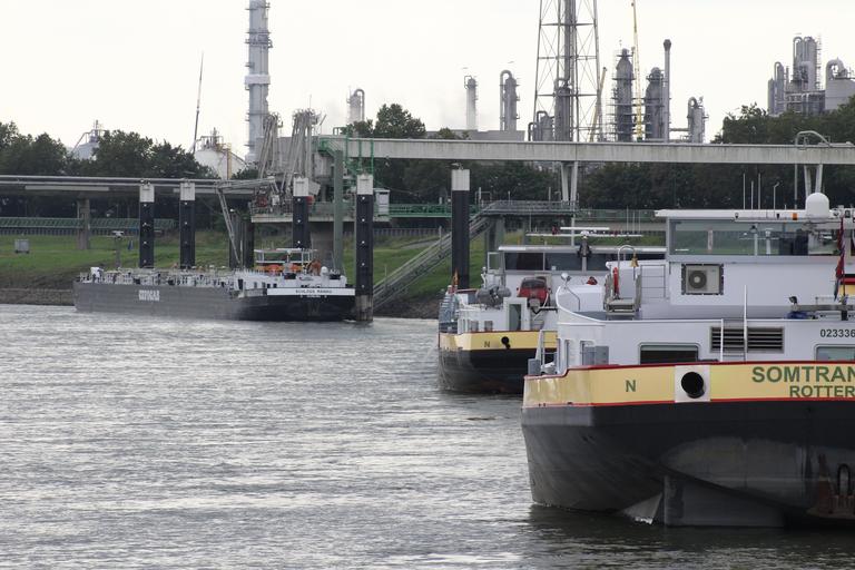 Keywords: rhine shipping water river dormagen unload station chemical industry transport germany ship traffic blue sky industry summer landscape