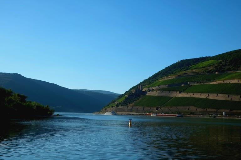 Keywords: rhine valley river viewpoint view outlook landscape nature vision good view mountains foresight scenic summer direction panorama rhine wide atmospheric atmosphere mood water sunlight waters flow germany rest rhine river vineyards