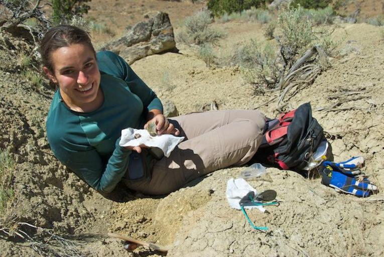| Keywords: geology fossils fieldwork fossil beds excavation people outdoor GeoCorps Intern Win McLaughlin, John Day Fossil Beds National Monument, Oregon, showing off part of a rhino tooth after chiseling it out of a sandstone deposit near Pineville, Oregon. (NPS Photo by Win McLaughlin, GIP) GeoCorps Intern Win McLaughlin, John Day Fossil Beds National Monument, Oregon, showing off part of a rhino tooth after chiseling it out of a sandstone deposit near Pineville, Oregon. (NPS Photo by Win McLaughlin, GIP) |