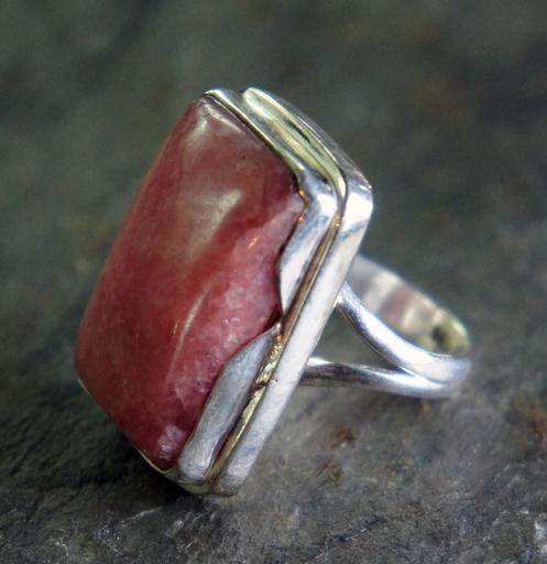 Keywords: rhodochrosite pink silver metal jewelry jewel stone gem gemstone huge cabochon cab ring setting sterling antique