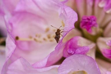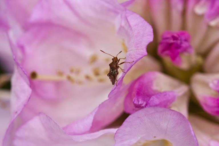 Keywords: rhododendron blossom bloom spring pink rhododendron bush beetle insect nature