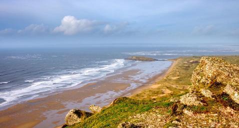 Keywords: The beach at Rhossili Bay, Gower, with the Pembrokeshire coast in the far distance. gower rhossili