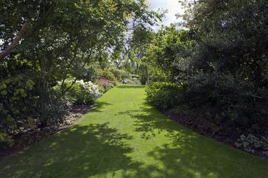 Keywords: rhs hyde hall garden long avenue trees lawn white hydrangea dapple shade