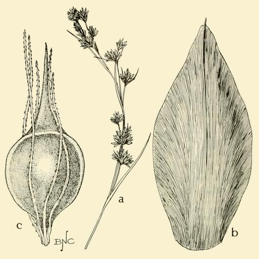 Keywords: Rhynchospora glomerata AWP-SW.png en Rhynchospora glomerata - Clustered beaksedge<br>a top of plant X 1/2;<br>b scale X 25;<br>c achene X 15 1972-01 Aquatic and Wetland Plants of the Southwestern United States Water Pollution Control Research Series Environmental Protection Agency Research and Monitoring January 1972 Page 474 Fig 244 Donovan S Correll Southern Methodist University and Helen B Correll Botanical Editor and Research for EPA Illustration courtesy of R K Godfrey other versions PD-USGov Rhynchospora glomerata Aquatic and wetland plants of southwestern United States
