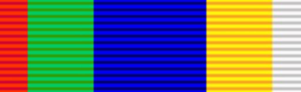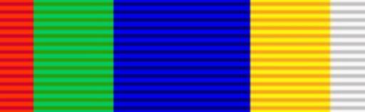 | Keywords: Ribbon - Dekoratie voor Trouwe Dienst (SAR).png Size 320x98px scale 10px 1 mm Dekoratie voor Trouwe Dienst a South African military good service decoration in the South African Republic Transvaal orientation 32 millimetres wide with a 3 mm wide red band a 7 mm wide green band a 12 mm wide blue band a 7 mm wide orange band and a 3 mm wide white band own Col André Kritzinger 2015-01-27 100px<br> Orange Free State orientation CC0 Col André Kritzinger Kritzinger's decorations medals 375 1 Ribbon bars of South Africa 375 1 Ribbon bars of South Africa pre-1952 375 1 |