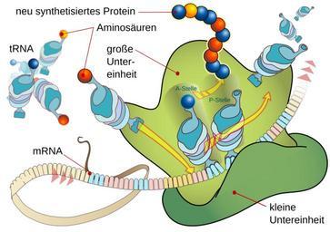 | Keywords: Ribosom mRNA translation de.svg Schema das die Translation von mRNA und die Synthese von Proteinen am Ribosom zeigt Dies ist die ins Deutsche übersetzte Version Ribosome_mRNA_translation_en svg 2009-07-03 22 39 UTC Ribosome_mRNA_translation_en svg LadyofHats derivative work Matt <span class signature-talk >talk</span> Other versions/Ribosom mRNA translation original upload log This image is a derivative work of the following images File Ribosome_mRNA_translation_en svg licensed with PD-user 2009-06-29T08 57 08Z LadyofHats 651x459 151312 Bytes <nowiki>outlined text to aboid rendering problems FOR TEXT EDIT USE EARLIER UPLOADED VERSION </nowiki> 2009-06-29T08 47 13Z LadyofHats 651x459 115756 Bytes <nowiki>reflected image to be readen from left to right and then fixed the tRNA so it doesnt seem to have in between pieces</nowiki> 2008-09-29T19 41 37Z LadyofHats 646x459 137836 Bytes <nowiki> diagram showing how the translation of the mRNA and the synthesis of proteins is made by ribosomes self-made based on http //publications nigms nih gov/insidethecell/images/ch2_ribosome_pr</nowiki> Uploaded with derivativeFX Translation biology SVG diagrams in German |