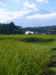 Keywords: rice rice cultivation ear of rice green yellow-green paddy field mt fuji cloud sky blue sky white cloud woods 246 route gotemba shizuoka prefecture japan summer