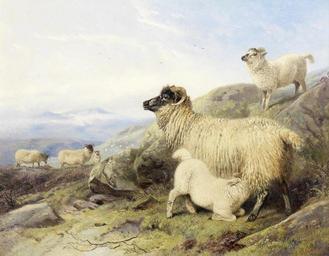 | Keywords: Richard Ansdell - Sheep on a mountainside (1856).jpg Artwork Creator Richard Ansdell 1856 oil canvas cm 33 5 43 accession number object history with Richard Green Fine Paintings London<br/>Private collection UK credit line exhibition history R Ansdell/1856 lower right signature / date http //www bonhams com/auctions/20486/lot/27/ Bonhams London 10 Jul 2013 lot 27 PD-old-100 DEFAULTSORT Ansdell Richard; Sheep on a mountainside 1856; Bonhams 2013 Richard Ansdell Paintings of sheep Oil paintings of animals 1856 paintings Images from Bonhams |
