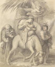 | Keywords: Richard Cosway - Flight into Egypt - Google Art Project.jpg Inscribed in graphite on mount lower center R Cosway ; in graphite lower right 15 ; inscribed in graphite on mount verso lower right Richard Cosway Flight into Egypt Inscription _Signed_and_Dated Signed in graphite on mount lower center R Cosway Not on View Gray ink gray wash watercolor black chalk red chalk and graphite on medium slightly textured cream laid paper mother women donkey angels Mary Jesus Christ 7-2 BC/BCE to 30-36 AD/CE children people by age group infants baby men staves wings costume accessories robes flasks bottles historical subject special url_id YgGuNCxmyX9Hqg PD-old-100-1923 1821 Richard Cosway Google Art Project works by Richard Cosway Flight into Egypt |