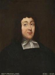 | Keywords: Richard Frankland (1630–1698).jpg Richard Frankland tutor Oil on canvas Size cm 48 59 Institution Mansfield College Oxford object history exhibition history credit line accession number place of creation http //www bbc co uk/arts/yourpaintings/paintings/richard-frankland-16301698-ma-222662 PD-old-auto 1892 GB Puritans Paintings by Gustavus Ellinthorpe Sintzenich Images from BBC Your Paintings Uploaded with UploadWizard 1630 births 1698 deaths Presbyterians from England Theologians from England |
