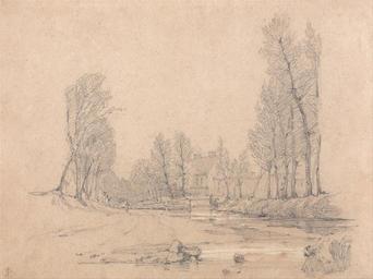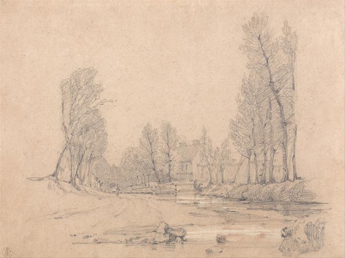 | Keywords: Richard Parkes Bonington - A Wooded Stream and a Farmhouse in Normandy - Google Art Project.jpg Inscribed on back in graphite center at Poix Inscription _Signed_and_Dated Not signed Not on View Graphite on medium brown rough wove paper rocks figures farmhouse bridge river stream trees landscape special url_id aQE3y3VKpJ3OsQ PD-old-100-1923 1828 Normandy by Richard Parkes Bonington Google Art Project works by Richard Parkes Bonington | ||||