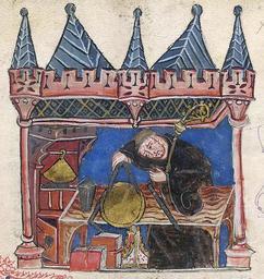 | Keywords: Richard of Wallingford.jpg Miniature of Richard of Wallingford Abbot of St Albans mathematician and inventor of a mechanical astronomical clock He is shown seated at his desk measuring with a pair of compasses Title of the book History of the abbots of St Albans Author Thomas of Walsingham Date 14th century Language Latin The first version is a lossless adaptation from http //imagesonline bl uk/ service search action do_quick_search language en q Wallingford The current version was digitally changed for better visualization From The British Library; Record Number - c3919-08; Shelfmark - Cotton Claudius E IV; Page Folio Number - f 201 PD-Art PD-old-100 1500 Astronomy in medieval miniatures Medieval miniatures of monks Studies in art Medieval miniatures of historical persons Compasses in art Richard of Wallingford Artworks missing infobox template |
