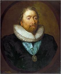 | Keywords: people indoor Richard Weston, 1st Earl of Portland, KG (1 March 1577 – 13 March 1634/1635), was Chancellor of the Exchequer and later Lord Treasurer of England under James I and Charles I, being one of the most influential figures in the early years of Charles I's Personal Rule and the architect of many of the policies that enabled him to rule without raising taxes through Parliament. Weston was the eldest son and heir of Sir Hierome Weston, High Sheriff of Essex, and the former Mary Cave. He was born at Roxwell, Essex, and was a student of the Middle Temple. He served as Member of Parliament (MP) for a number of constituencies including Maldon (1601-1603), Midhurst (in the parliament of 1604-1611), Essex (in the Addled Parliament of 1614), Arundel (1622), Bossiney (1624), Callington (1625) and Bodmin (1626). He was knighted in 1603. During the reign of King James I of England, Weston was sent on embassies to Bohemia, Brussels, and Spain. On the last assignment, he negotiated for the restitution of the Palatine. Upon his return to England in 1621, he was made Chancellor of the Exchequer, and retained the post after the accession of Charles I; he proved a capable financial manager but incurred popular hatred as a (justly) suspected Roman Catholic, while also later earning the enmity of the (Catholic) queen, Henrietta Maria for refusing grants to her favourites. He opposed wars with Spain in 1623 and France in 1626, but managed to find ways of raising the money to fund them when required, even when it was impossible to secure the co-operation of Parliament. Weston was elevated to the peerage on 13 April 1628, as Baron Weston, of Neyland. He was subsequently made Lord Treasurer of England and invested with the Order of the Garter. His policies proving highly unpopular, he escaped impeachment in 1629 only by the dissolution of Parliament. Nevertheless, he played an important role in the King's Personal Rule without Parliament, finding new sources of revenue while preventing any further increase in the King's expenditure, and being for a time the most influential of Charles's advisers. He persuaded the King to make peace with France in 1629 and Spain in 1630, removing the biggest drain on the treasury, and to sign the secret treaty with Spain in 1634. By the time he died in 1635, the Crown was solvent. On 17 February 1633, Weston was created Earl of Portland. Lord Portland was married twice. His first wife was Elizabeth Pincheon of Writtle in Essex. His second wife was Frances Walgrave of Boreley in Essex. He had three children by his first marriage, including Lady Mary Weston (2 January 1603-after August 1678), who married the 2nd Lord Aston of Forfar in 1629. He had eight children by his second marriage, including Elizabeth Weston, who married the 2nd Viscount Netterville, and his son Thomas, who later succeeded as 4th Earl. His nephew, Jeremiah Clarke, became a Governor of Rhode Island in the American colonies. On his death, he was succeeded by his second but eldest surviving son, Jerome. Richard Weston, 1st Earl of Portland, KG (1 March 1577 – 13 March 1634/1635), was Chancellor of the Exchequer and later Lord Treasurer of England under James I and Charles I, being one of the most influential figures in the early years of Charles I's Personal Rule and the architect of many of the policies that enabled him to rule without raising taxes through Parliament. Weston was the eldest son and heir of Sir Hierome Weston, High Sheriff of Essex, and the former Mary Cave. He was born at Roxwell, Essex, and was a student of the Middle Temple. He served as Member of Parliament (MP) for a number of constituencies including Maldon (1601-1603), Midhurst (in the parliament of 1604-1611), Essex (in the Addled Parliament of 1614), Arundel (1622), Bossiney (1624), Callington (1625) and Bodmin (1626). He was knighted in 1603. During the reign of King James I of England, Weston was sent on embassies to Bohemia, Brussels, and Spain. On the last assignment, he negotiated for the restitution of the Palatine. Upon his return to England in 1621, he was made Chancellor of the Exchequer, and retained the post after the accession of Charles I; he proved a capable financial manager but incurred popular hatred as a (justly) suspected Roman Catholic, while also later earning the enmity of the (Catholic) queen, Henrietta Maria for refusing grants to her favourites. He opposed wars with Spain in 1623 and France in 1626, but managed to find ways of raising the money to fund them when required, even when it was impossible to secure the co-operation of Parliament. Weston was elevated to the peerage on 13 April 1628, as Baron Weston, of Neyland. He was subsequently made Lord Treasurer of England and invested with the Order of the Garter. His policies proving highly unpopular, he escaped impeachment in 1629 only by the dissolution of Parliament. Nevertheless, he played an important role in the King's Personal Rule without Parliament, finding new sources of revenue while preventing any further increase in the King's expenditure, and being for a time the most influential of Charles's advisers. He persuaded the King to make peace with France in 1629 and Spain in 1630, removing the biggest drain on the treasury, and to sign the secret treaty with Spain in 1634. By the time he died in 1635, the Crown was solvent. On 17 February 1633, Weston was created Earl of Portland. Lord Portland was married twice. His first wife was Elizabeth Pincheon of Writtle in Essex. His second wife was Frances Walgrave of Boreley in Essex. He had three children by his first marriage, including Lady Mary Weston (2 January 1603-after August 1678), who married the 2nd Lord Aston of Forfar in 1629. He had eight children by his second marriage, including Elizabeth Weston, who married the 2nd Viscount Netterville, and his son Thomas, who later succeeded as 4th Earl. His nephew, Jeremiah Clarke, became a Governor of Rhode Island in the American col