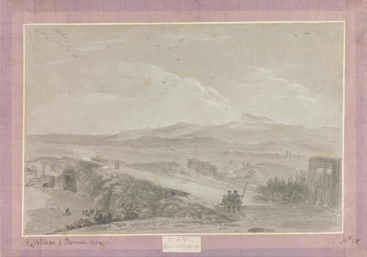 | Keywords: Richard Wilson - The Via Nomentana - Google Art Project.jpg Inscribed in brown ink bottom center The Via Nomentana ; in black chalk lower right No 18 ; in graphite verso upper left 7402 Inscription _Signed_and_Dated Signed and dated in graphite on mount lower left R Wilson f Romae 1754 Not on View Black and white chalk with stumping on medium moderately textured blue laid paper mounted on medium moderately textured cream wove paper with a border of medium moderately-textured wove paper with purple wash travelers bridge road landscape special url_id iQFtRQAKCIYvlw PD-old-100-1923 1782 Richard Wilson painter Google Art Project works by Richard Wilson Via Nomentana 1754 Ancient Rome in art |