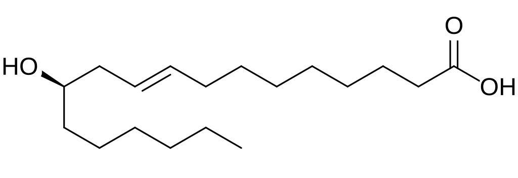 Keywords: Ricinelaidic acid.svg Chemical structure of ricinelaidic acid 9E 12R -12-hydroxyoctadec-9-enoic acid Own 15 57 17 April 2014 UTC Ed Edgar181 Hydroxy acids Monounsaturated fatty acids Trans fatty acids