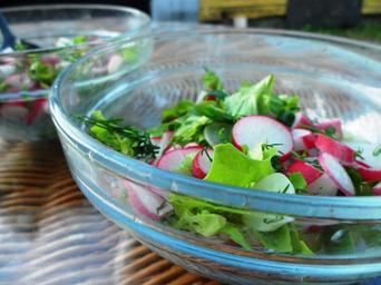 Keywords: Ridikėlių salotos.JPG en Radish Raphanus sativus salad lt Ridikėlių salotos own Hugo arg Viktorija4 2011-06 Cc-zero Radish-based food Salads of Lithuania Vegetarian food of Lithuania