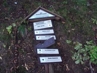 Keywords: Riedlova jeskyně 1.JPG cs Rozcestník Nad Riedlovou jeskyní own Zákupák 2015-05-18 Riedlova jeskyně Hiking and footpath fingerposts in Česká Lípa District
