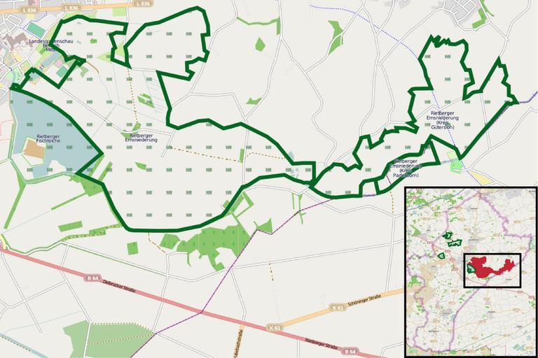 | Keywords: Rietberg - NSG Rietberger Emsniederung - Map.png Rietberg - Nature reserve Rietberger Emsniederung - overview map<br/>Number and borders of nature reserves are subject to frequent change In order to facilitate reproduction of this map from openstreetmap the following data is stored here <br/> export boundaries north 51 813; west 8 43; south 51 78; east 8 51; mapnik svg scale 1 28 000<br/> nature reserve boundary stroke weight 10 0; <br/>nature reserve stroke color R 5 G 102 B 36; <br/>municipality border stroke weight as found Rietberg - Naturschutzgebiet Rietberger Emsniederung - à bersichtskarte Rietberg - Réserve naturelle Rietberger Emsniederung - vue d'ensemble Own 2011-04-14 Hagar66 Licensed under the GFDL by author <gallery> image Rietberg - NSG Rietberger Emsniederung und Fischteiche - Map svg </gallery> 51 80481 8 43184 region DE Cc-zero Maps of Rietberg Nature reserves in Rietberg |