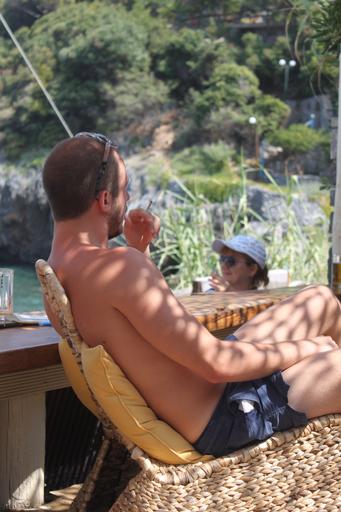 Keywords: right left different sides greece smoking man beach resort rest summer tourist
