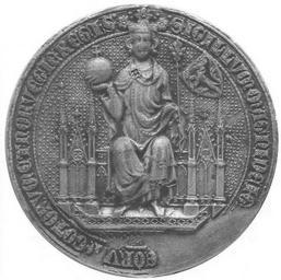 | Keywords: Riksklämman.jpg en <s>Seal of Sweden depicting Saint Eric of Sweden holding the Three Crowns coat of arms in his left hand and a long staff with a two-tailed streamer in his right hand surrounded by the text Sanctus ericus svevorum gothorum rex Sigillum regni Svecie “ Saint Eric king of Swedes and Geats Seal of the Swedish kingdom The seal was in use 1439-1520 especcially during times when Sweden lacked a king </s> sv <s>Sveriges rikssigill den s k riksklämman avbildar Erik den helige som hÃ¥ller vapenskölden tre kronor i sin vänstra handoch en lÃ¥ng stav med en tvÃ¥tungad vimpel i den högra handen omgiven av texten Sanctus ericus svevorum gothorum rex Sigillum regni Svecie “ Erik den helige svears och götars konung Svearikets sigill Sigillet var i bruk 1439-1520 och användes särskilt i tider när Sverige saknade kung </s> Kari Tarkiainen Sveriges Österland p 50 Commissioned by Karl Knutsson Bonde <s>1436</s> PD-Art Seals of medieval Sweden |